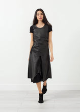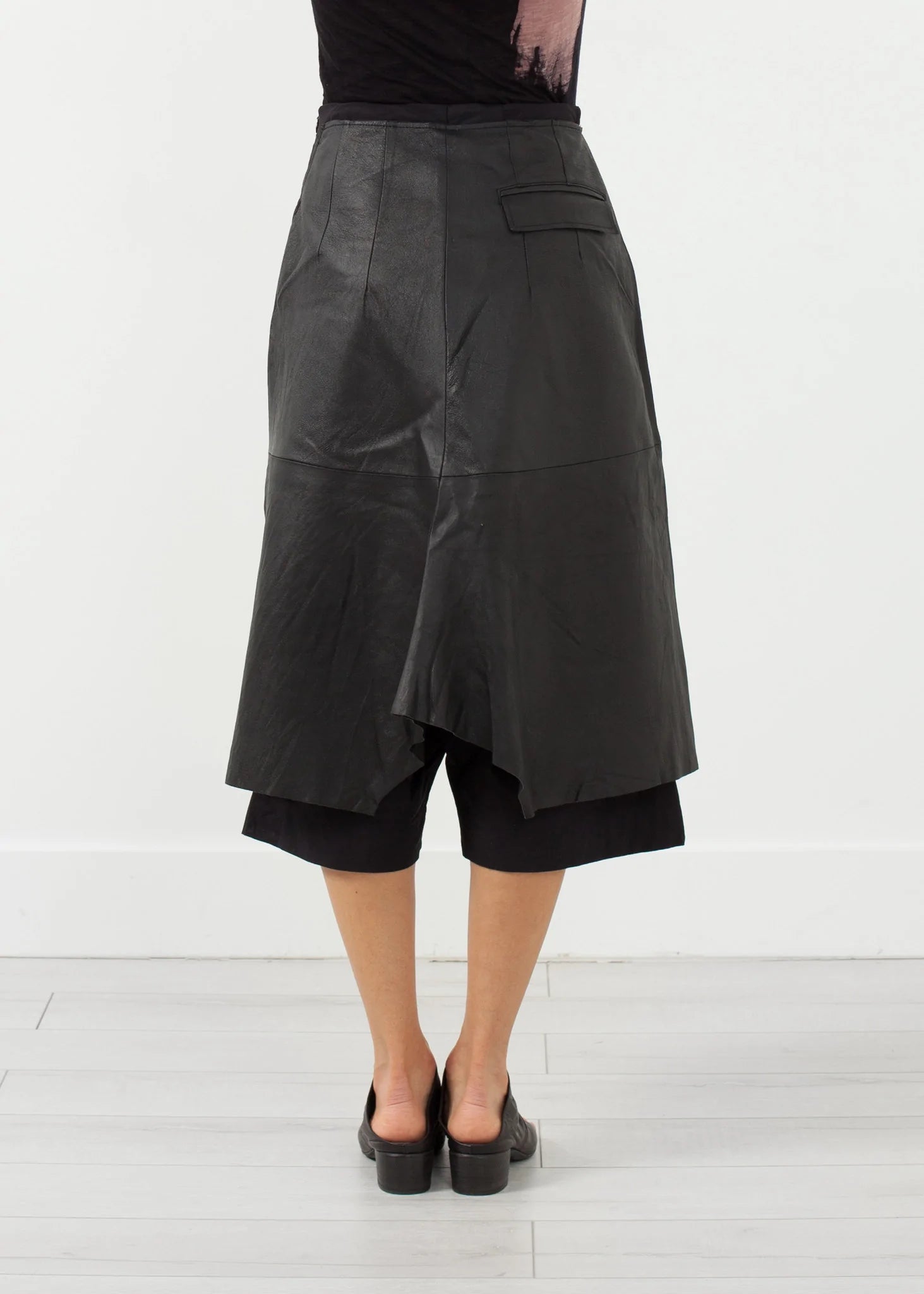 The Leather Drop Crotch offers a truly unique silhouette with its high waist in contrast to the extreme drop. Leather overlay is a textural joy with a comfortable under piece. Flattering fit with tailored darts. Single exterior pocket at back. Invisible zip closure at side. Rundholz. Color Black. 100% Lamb's Leather, Second Fabric 35% Linen, 35% Cotton, 25% Polyamide, 5% Elastane. Made in Germany. Ashley is wearing an X-Small.