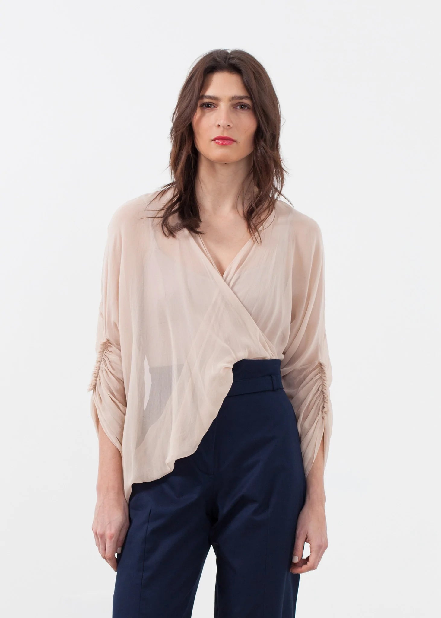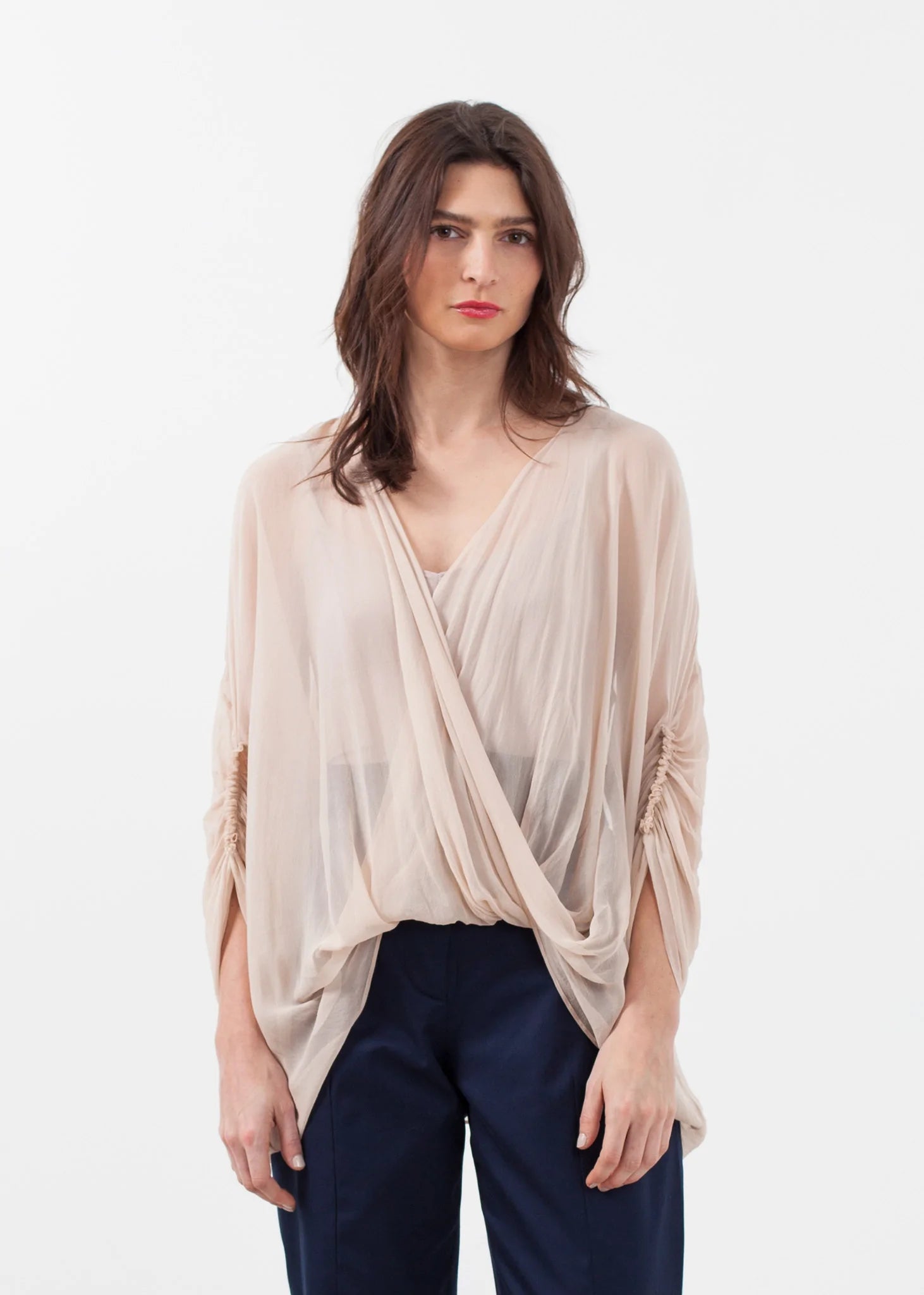 Louiza Babouryan offers a sweet cacophony of artistic vision for her Spring/Summer 2015 line. Dreamy pieces paired with flowing silhouettes invites to indulge on that delicious side. The Twist Top is the needed finish for a night out. Deep V-neckline. Delicate gathers on sleeves. Color Sand. 100% Silk. Made in U.S.A. Lana is wearing an X-Small.